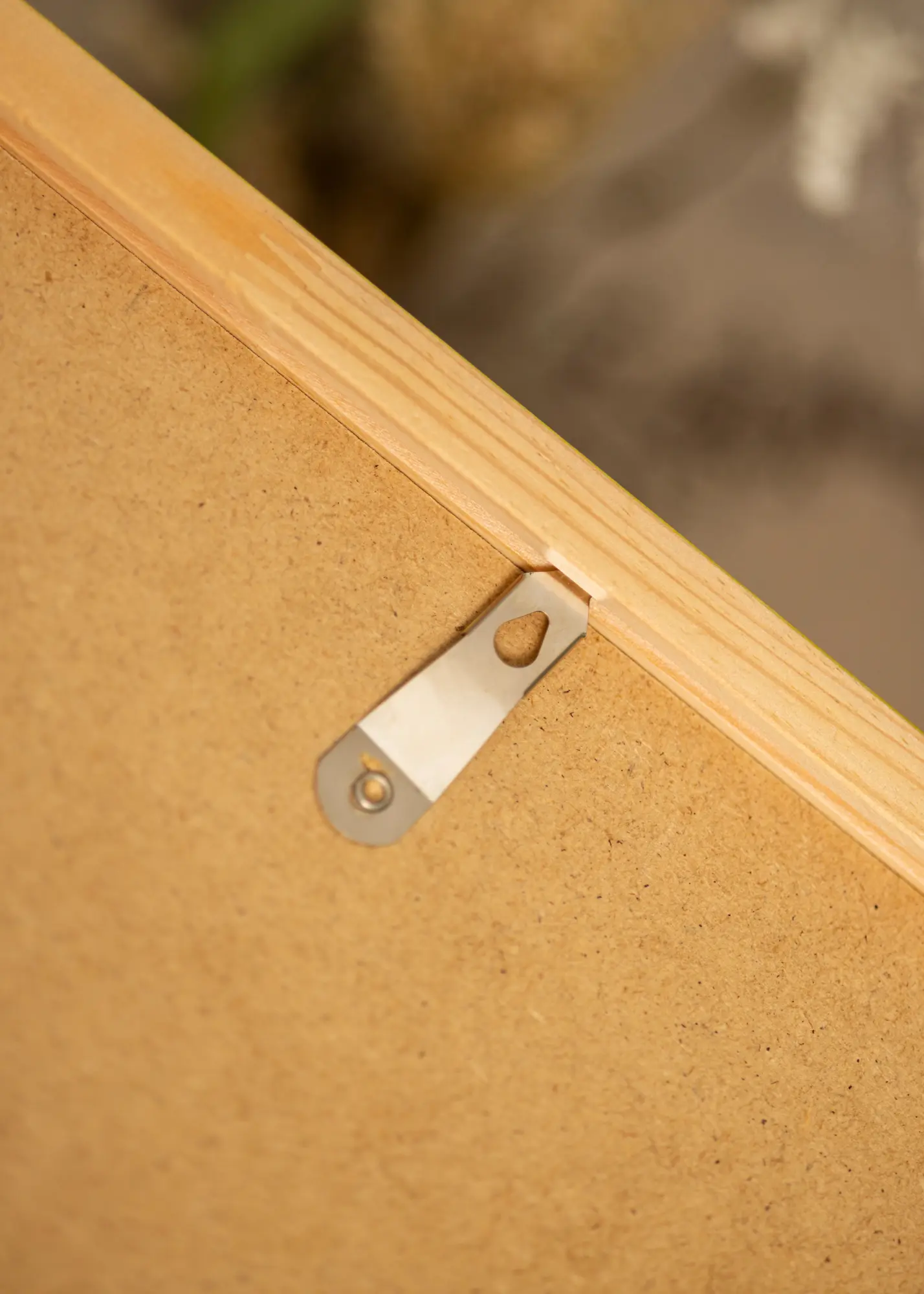 Le cadre a une largeur de 20 mm et une profondeur de 32 mm, offrant une encadrement stable et robuste. Avec des dimensions extérieures de 59x74 cm, ce cadre constitue un élément accrocheur sur le mur. Il est équipé de crochets métalliques à l'arrière, ce qui facilite son accrochage à la fois horizontalement et verticalement, selon ce qui convient le mieux à votre espace.