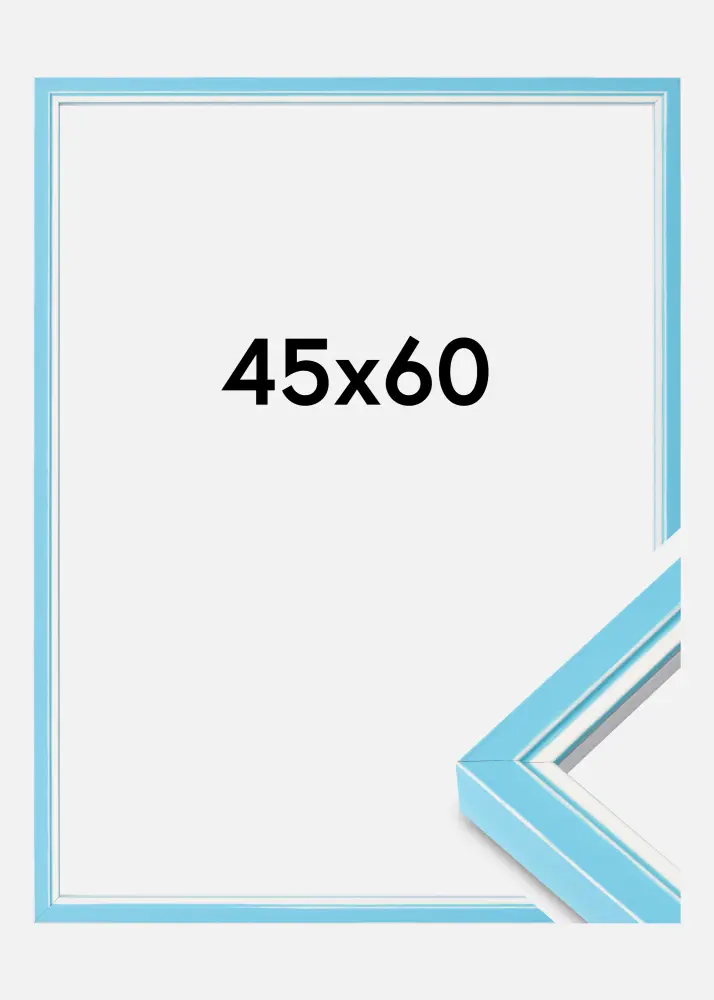 La couleur bleu clair et blanc du cadre apporte une sensation de fraîcheur et de jeu qui complète la décoration de la pièce. Avec un rebord de cadre mesurant 20 mm de largeur, ce cadre crée une belle encadrement sans prendre la vedette sur le sujet de la photo.