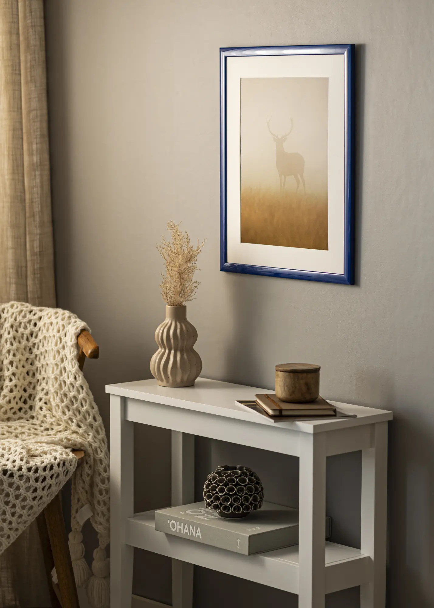 Cadre Dorset Bleu Foncé est un cadre sur mesure fabriqué dans notre propre atelier de cadrage, vous offrant la possibilité d'obtenir un cadre photo qui correspond parfaitement à vos besoins. Avec sa couleur bleu foncé profond et son fini brillant, ce cadre est un ajout élégant à n'importe quelle pièce. La surface laquée reflète la lumière d'une manière qui met en valeur les riches nuances de la couleur, créant une atmosphère vivante et sophistiquée.