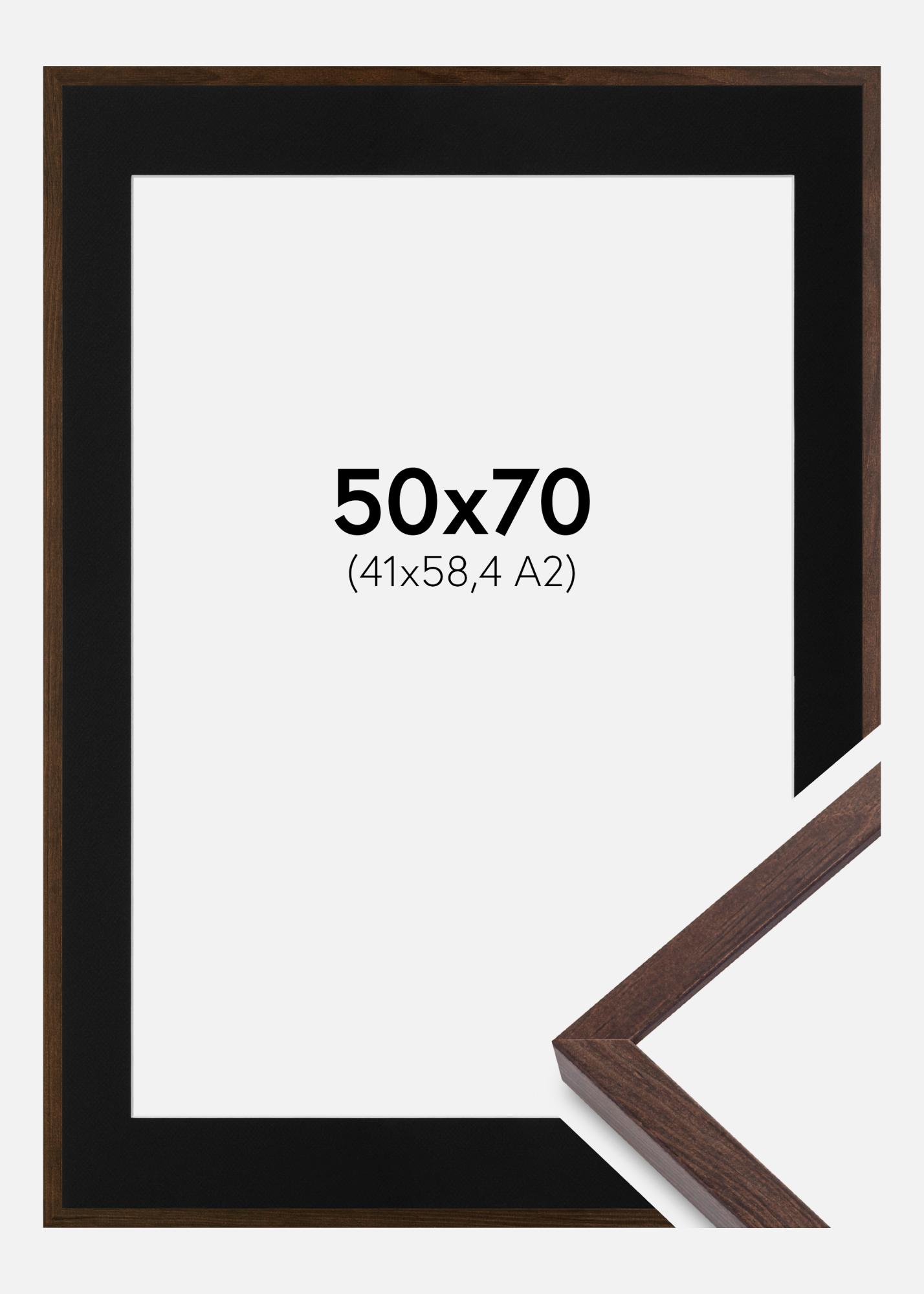Cadre E-Line Noyer 50x70 cm - Passe-partout Noir 42x59,4 cm