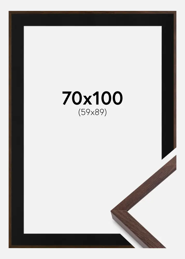 Cadre E-Line Noyer 70x100 cm - Passe-partout Noir 60x90 cm