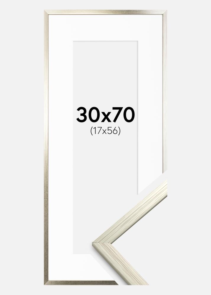 Cadre Edsbyn Argent 30x70 cm - Passe-partout Blanc 18x57 cm