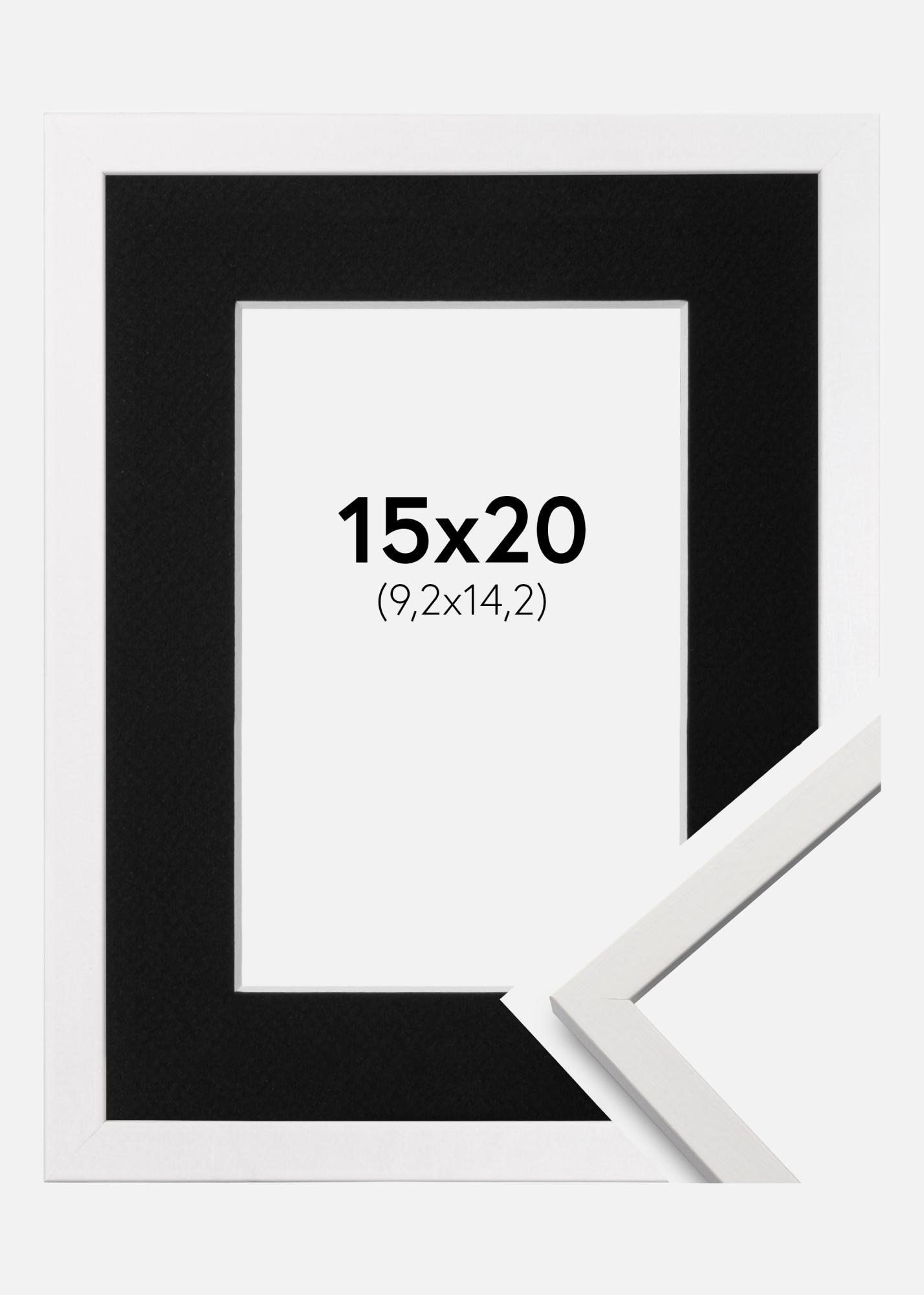 Forfait comprenant un cadre photo et un passe-partout noir inclus. Sur l'image du produit vous pouvez voir les dimensions du cadre (indiquées en gras) et les dimensions intérieures du passe-partout (indiquées entre parenthèses). Veuillez noter que les dimensions intérieures du passe-partout doivent toujours être inférieures de 1 cm à la taille de l'image souhaitée.