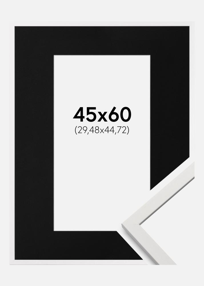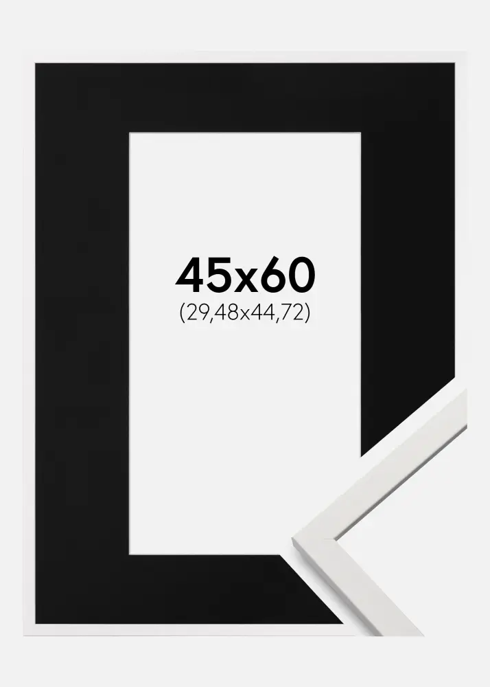 Forfait comprenant un cadre photo et un passe-partout noir inclus. Sur l'image du produit vous pouvez voir les dimensions du cadre (indiquées en gras) et les dimensions intérieures du passe-partout (indiquées entre parenthèses). Veuillez noter que les dimensions intérieures du passe-partout doivent toujours être inférieures de 1 cm à la taille de l'image souhaitée.