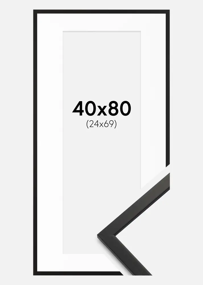 Cadre Edsbyn Noir 40x80 cm - Passe-partout Blanc 25x70 cm