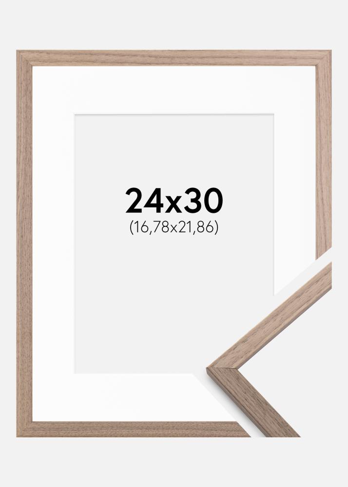 Forfait comprenant le cadre photo et le passe-partout blanc assorti. Sur la photo du produit, vous pouvez voir les dimensions du cadre (indiquées en gras) et les dimensions intérieures du passe-partout (indiquées entre parenthèses). Notez que les dimensions intérieures du passe-partout se doivent d'être toujours 1 cm inférieures par rapport à la taille de l'image que vous souhaitez encadrer.