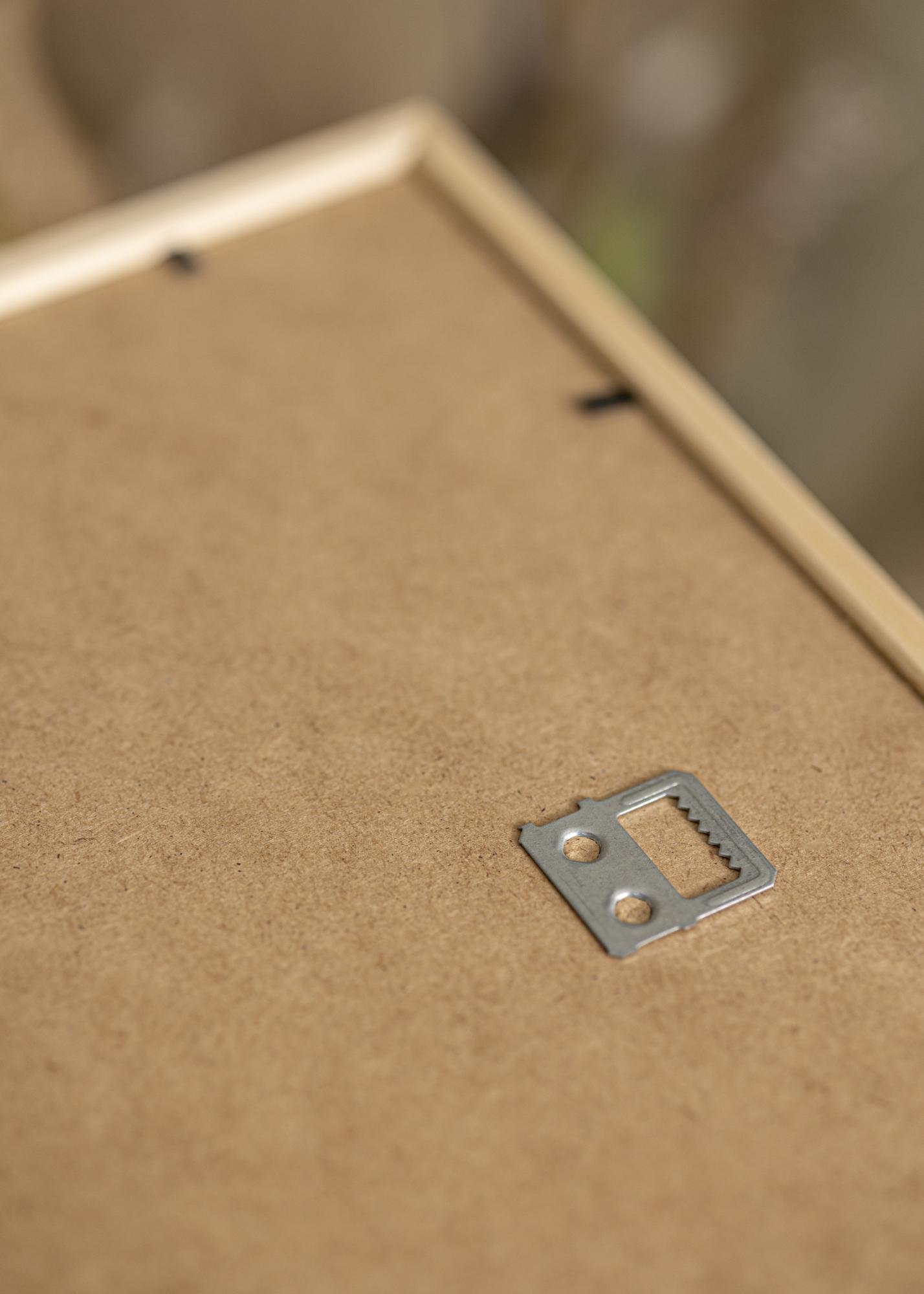 Le cadre est équipé de verre acrylique, un type de verre léger et incassable avec la même netteté cristalline que le verre ordinaire. Au dos se trouve un carton de fond en MDF, qui est maintenu en place par de petites broches. Pour insérer vos motifs dans le cadre photo, vous pouvez déplier les broches et desserrer le carton de fond. Le cadre peut être accroché au mur en position portrait et paysage, ce qui vous permet d'avoir plus de possibilités dans le choix de vos motifs.