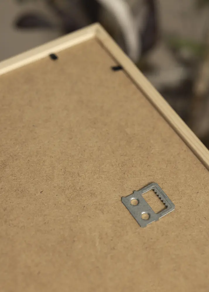 On nous demande parfois pourquoi le cadre est en placage en chêne et pas en véritable chêne massif, puisqu’il s'agit d'un cadre de qualité. La raison en est qu'il est difficile d'obtenir une surface contrôlée lorsqu'il s'agit de Chêne véritable, et il y a alors souvent des changements de couleur sur différentes parties du bois, ce qui dans certains contextes convient bien. Mais sur un cadre, cela risque seulement de donner l'impression que des parties du cadre sont décolorées.