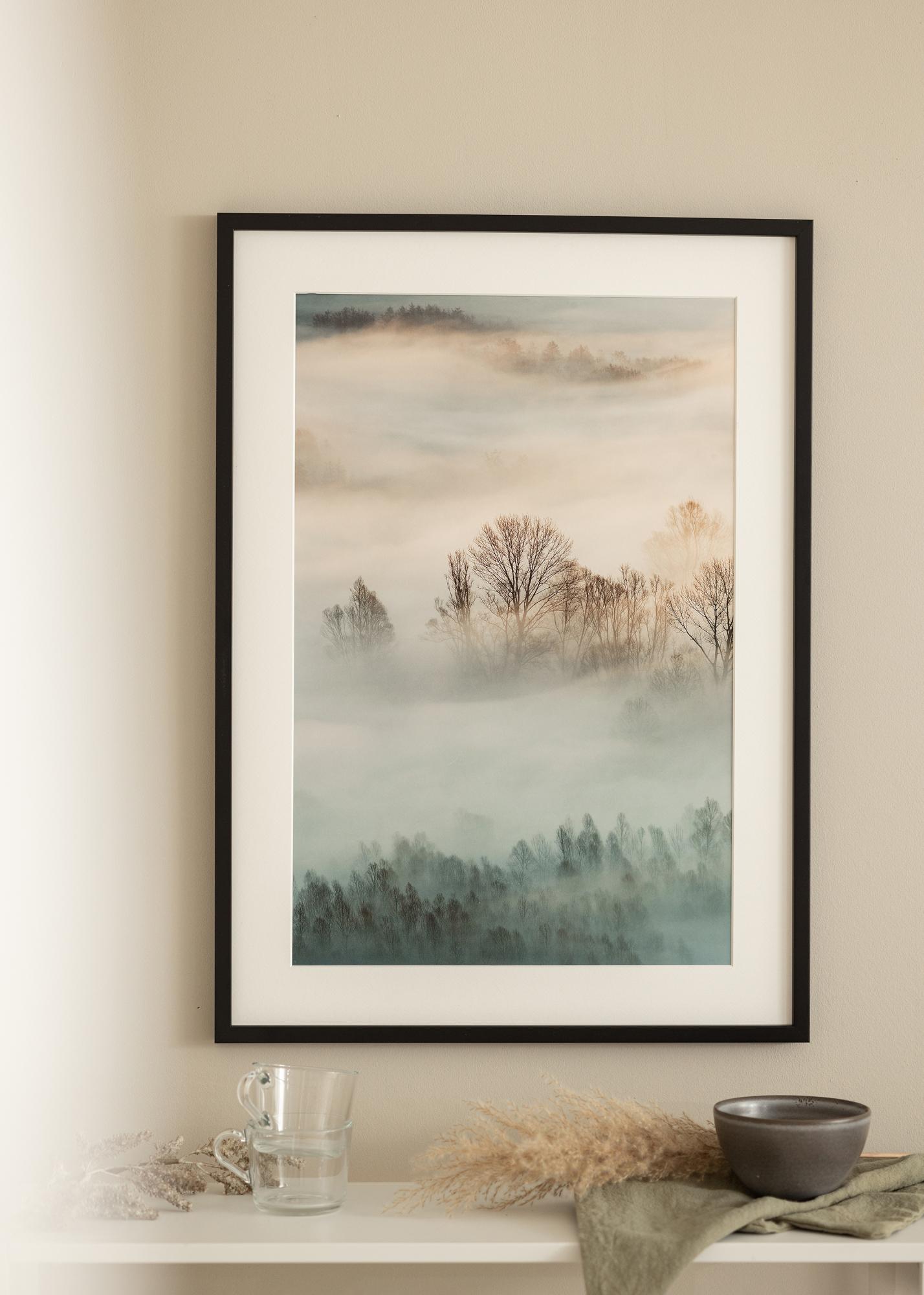 Le cadre peut être accroché au mur en position portrait et paysage, et il s'adapte aussi bien seul au mur qu'en combinaison avec d'autres cadres. Au dos se trouve une plaque de fond en HDF, qui est maintenue en place par de petites broches. Pour insérer vos motifs, dépliez les broches et retirez le fond.