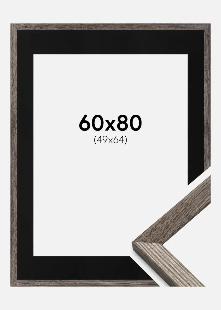 Forfait comprenant un cadre photo et un passe-partout noir inclus. Sur l'image du produit vous pouvez voir les dimensions du cadre (indiquées en gras) et les dimensions intérieures du passe-partout (indiquées entre parenthèses). Veuillez noter que les dimensions intérieures du passe-partout doivent toujours être inférieures de 1 cm à la taille de l'image souhaitée.