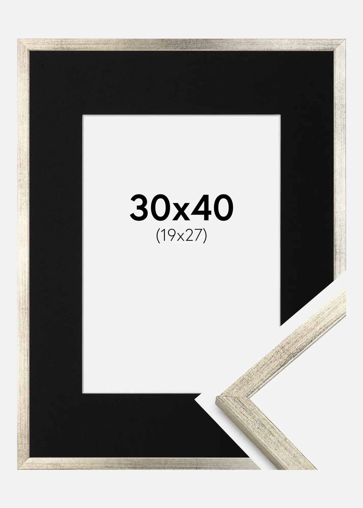 Cadre Galant Argent 30x40 cm - Passe-partout Noir 20x28 cm