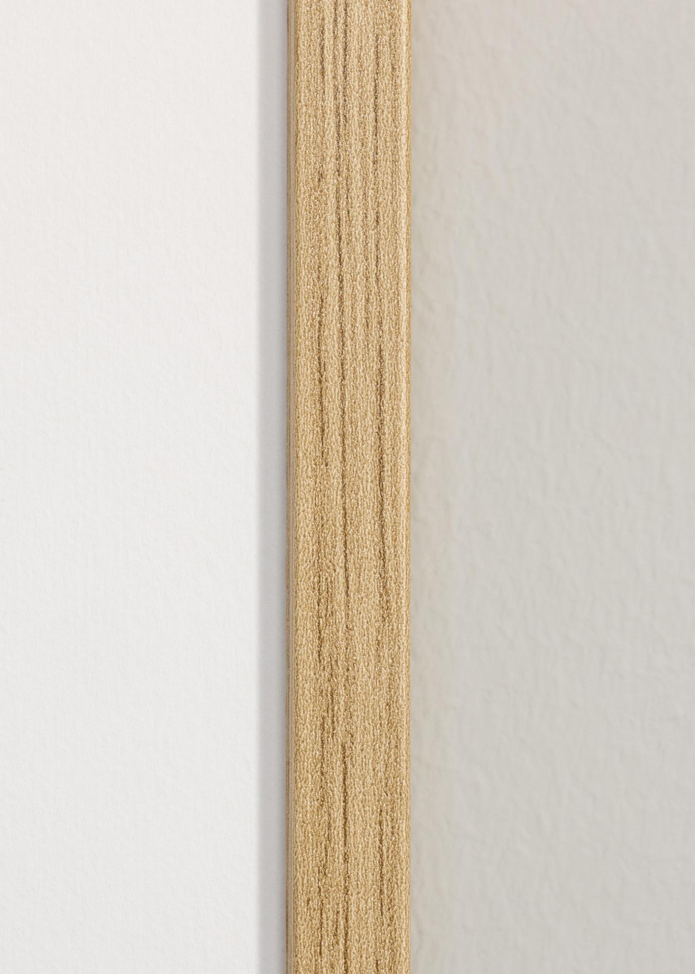 Dies ist ein dünner Rahmen, der perfekt geeignet ist, wenn Sie möchten, dass der gesamte Fokus auf dem Motiv liegt! Die Rahmenleiste ist 13 mm tief und 13 mm breit, was bedeutet, dass der Rahmen ein schlankes, aber dennoch solides Design hat. Der Rahmen ist aus Kiefernholz gefertigt und hat eine eichenfarbene Oberfläche. Auf der Rückseite befinden sich Wandhalterungen für sowohl horizontale als auch vertikale Aufhängung.