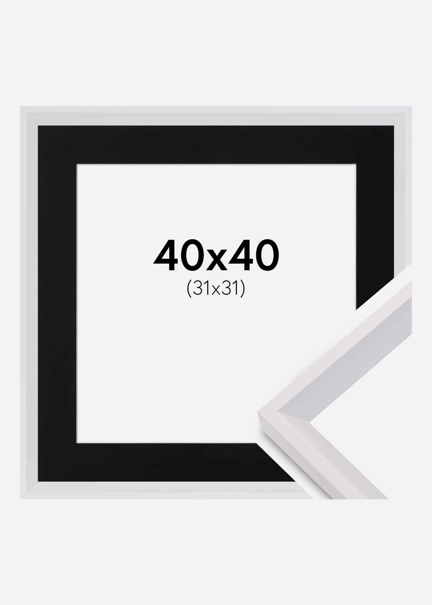 Forfait comprenant un cadre photo et un passe-partout noir inclus. Sur l'image du produit vous pouvez voir les dimensions du cadre (indiquées en gras) et les dimensions intérieures du passe-partout (indiquées entre parenthèses). Veuillez noter que les dimensions intérieures du passe-partout doivent toujours être inférieures de 1 cm à la taille de l'image souhaitée.