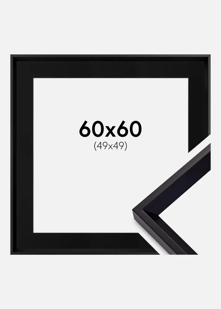 Forfait comprenant un cadre photo et un passe-partout noir inclus. Sur l'image du produit vous pouvez voir les dimensions du cadre (indiquées en gras) et les dimensions intérieures du passe-partout (indiquées entre parenthèses). Veuillez noter que les dimensions intérieures du passe-partout doivent toujours être inférieures de 1 cm à la taille de l'image souhaitée.