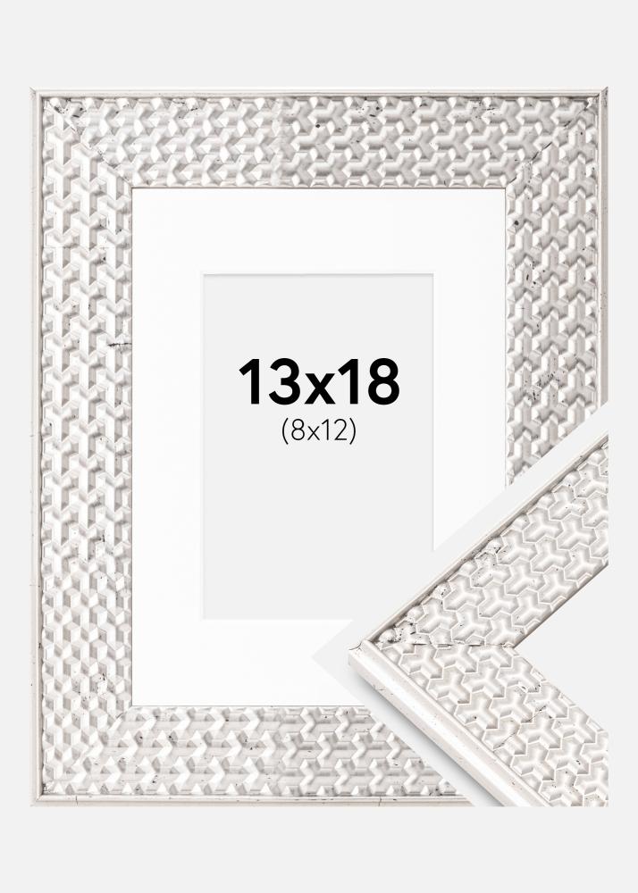 Cadre Grace Argent 13x18 cm - Passe-partout Blanc 9x13 cm
