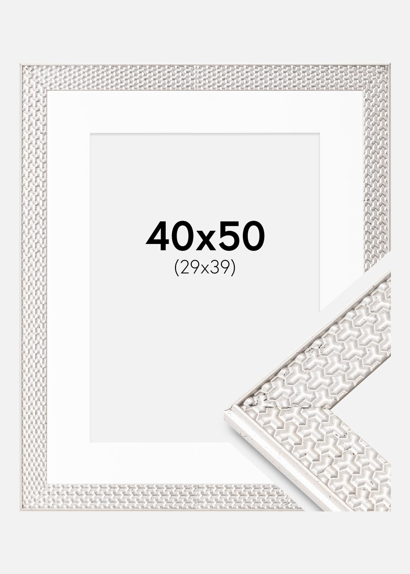 Cadre Grace Argent 40x50 cm - Passe-partout Blanc 30x40 cm