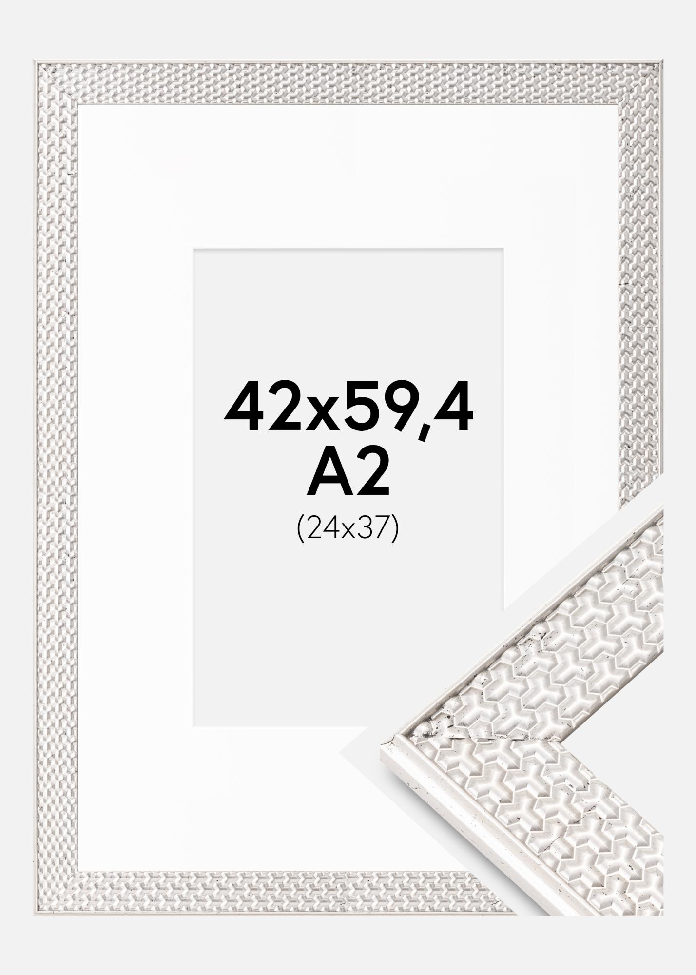Cadre Grace Argent 42x59,4 cm (A2) - Passe-partout Blanc 25x38 cm