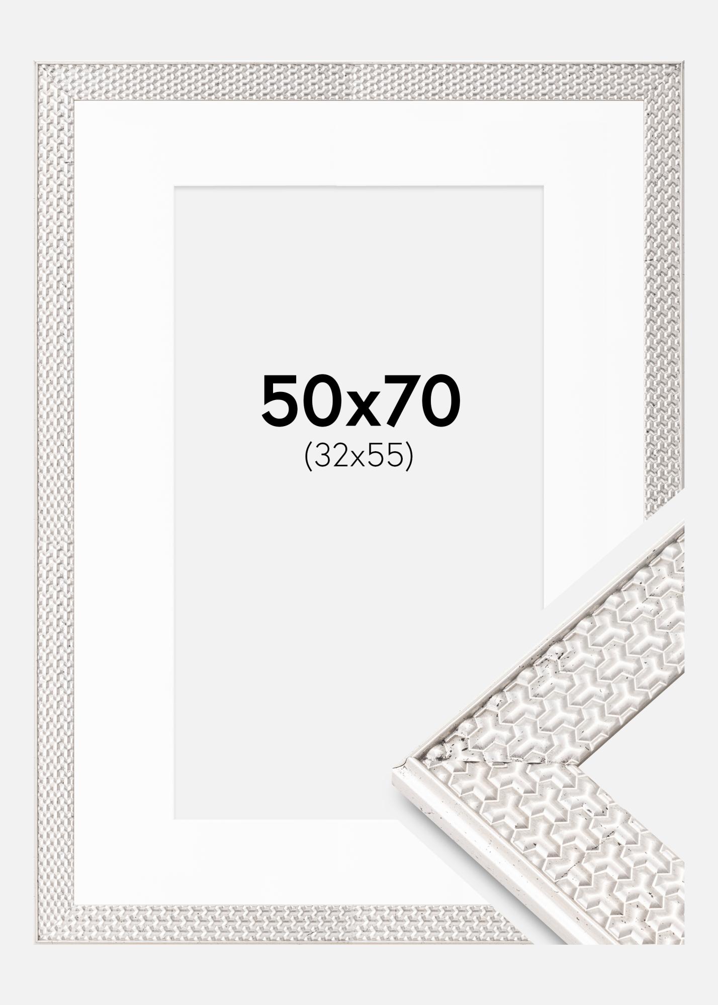 Cadre Grace Argent 50x70 cm - Passe-partout Blanc 33x56 cm