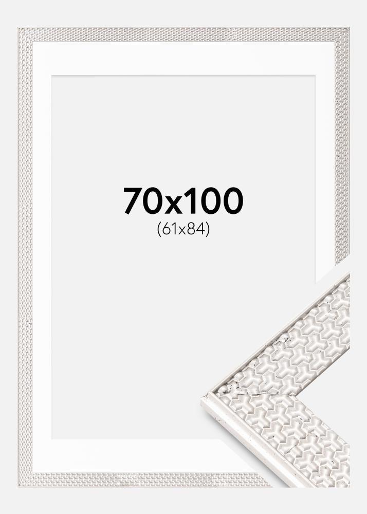 Cadre Grace Argent 70x100 cm - Passe-partout Blanc 62x85 cm
