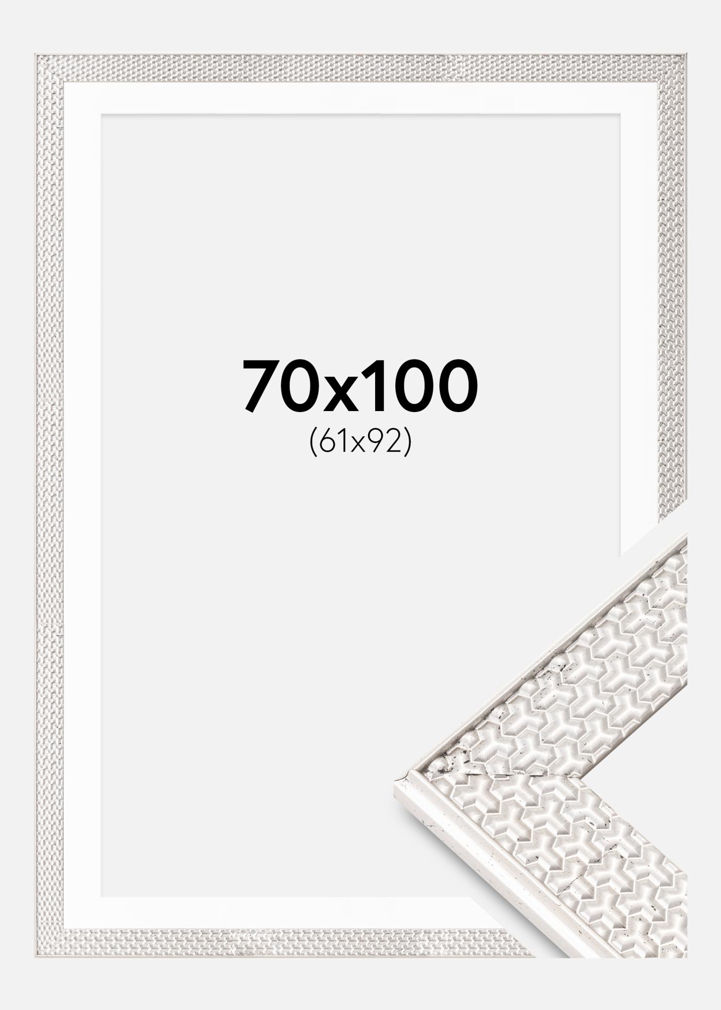 Cadre Grace Argent 70x100 cm - Passe-partout Blanc 62x93 cm