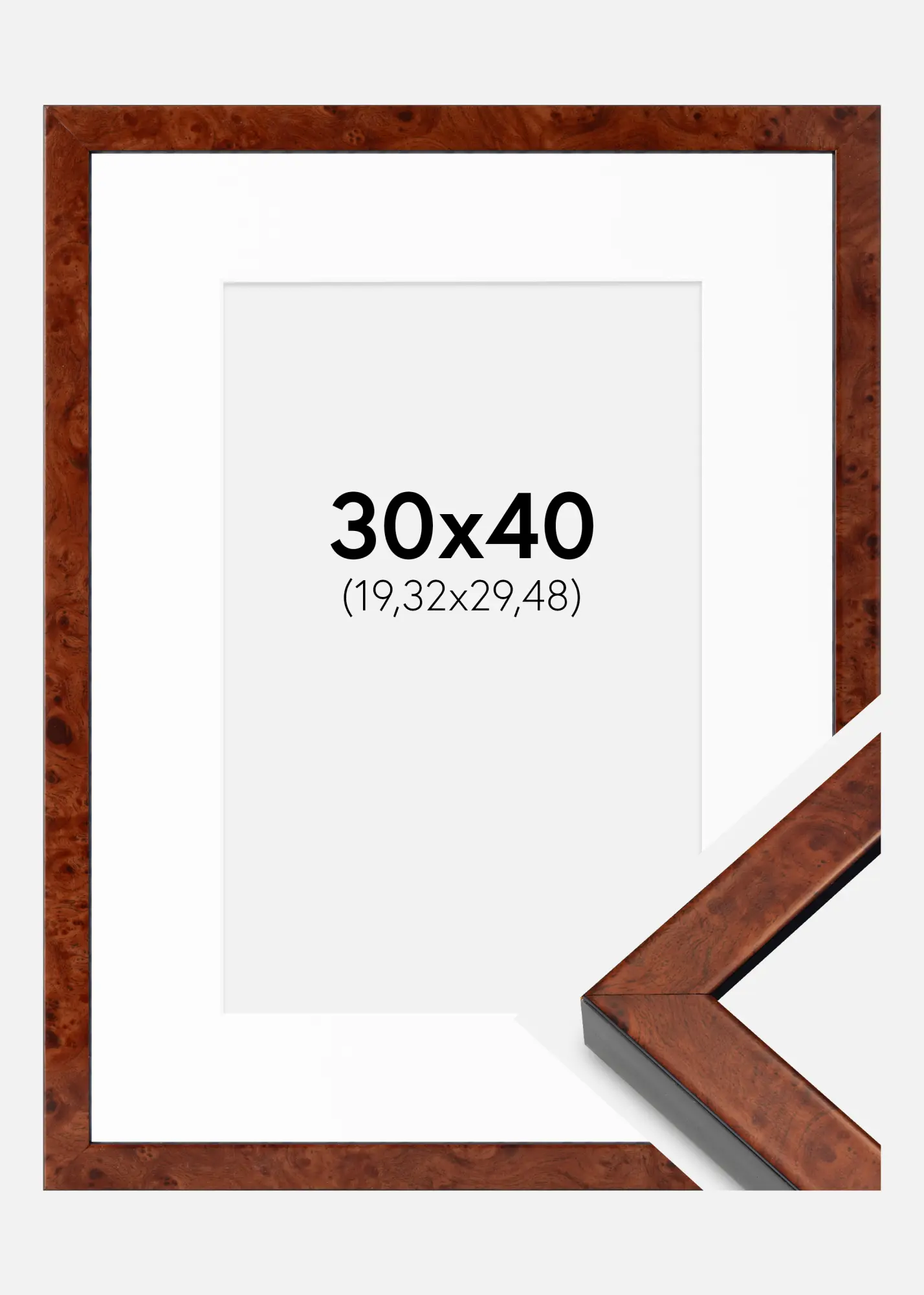 Kader Hermes Walnuss 30x40 cm - Passe-partout wäiss 8x12 inches