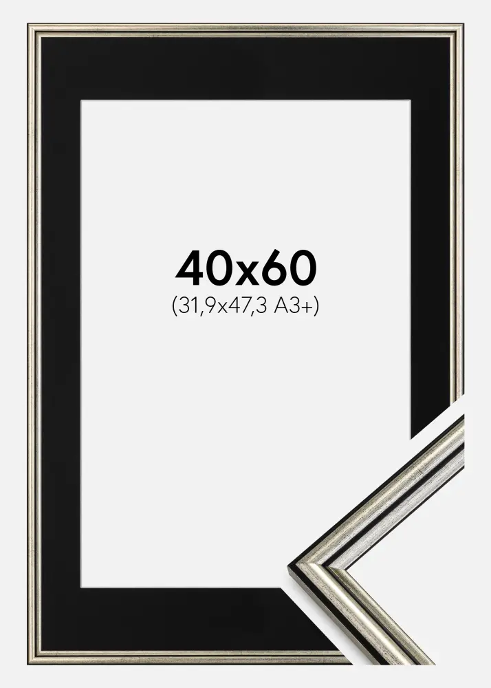 Cadre Horndal Argent 40x60 cm - Passe-partout Noir 32,9x48,3 cm (A3+)