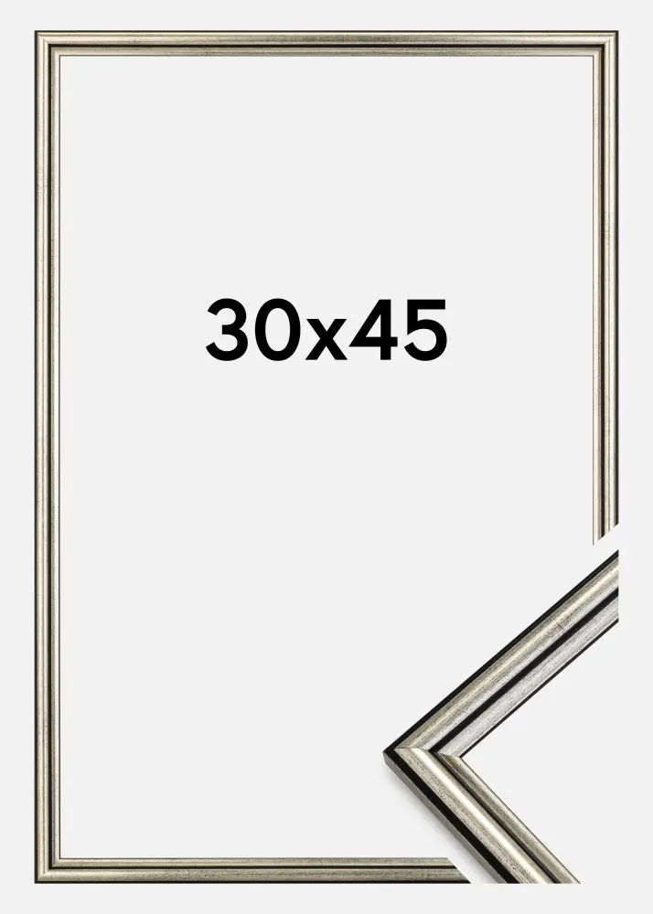 Découvrez l'élégance et le design sophistiqué de notre cadre argenté 30x45 cm, parfait pour mettre en valeur vos photos ou œuvres d'art préférées. Ce cadre photo est un élément stylé dans n'importe quelle pièce, avec ses touches noires subtiles et ses lignes noires qui lui donnent une profondeur et un caractère uniques.