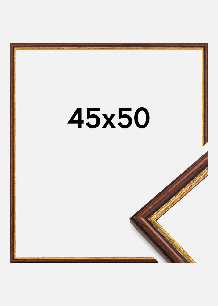 Horndal est un cadre de qualité fabriqué en Suède par Galleri 1. Le cadre est en bois et présente un profil marron moucheté de noir. Le bord le plus près de l'image est de couleur or avec des éléments marron. Le cadre a un profil à l'ancienne qui convient à la plupart des motifs.