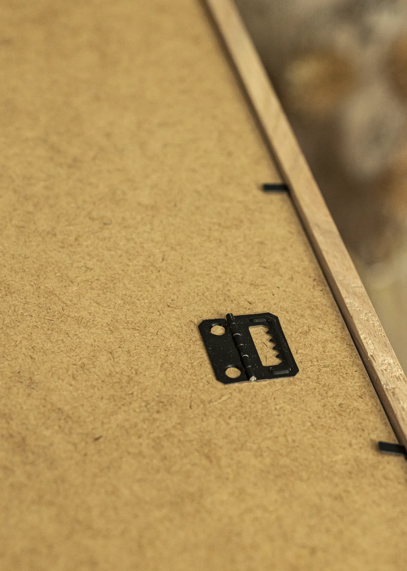 Au dos se trouve un carton de fond en MDF, qui est maintenu en place par de petites broches que vous pouvez déplier pour retirer le fond et insérer vos photos dans le cadre. Le cadre peut être suspendu au mur en position portrait et paysage.