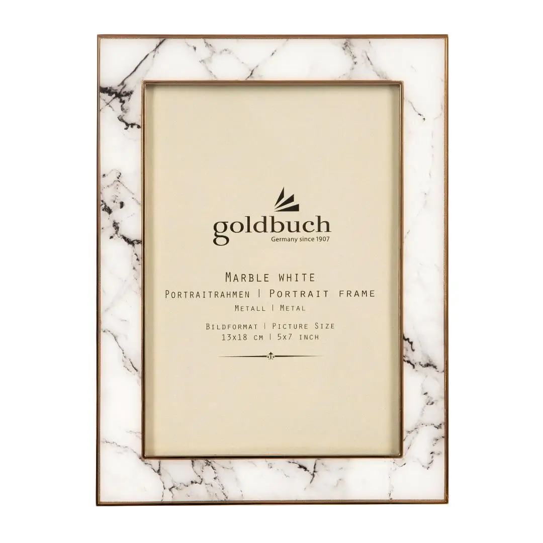 Avec ses dimensions de 13 x 18 cm, ce cadre convient parfaitement au mur, mais peut également être placé sur un bureau ou une table de chevet. Le design en marbre est complété par la bordure dorée subtile, ce qui lui permet de se fondre dans n'importe quel décor tout en ajoutant une touche d'élégance.