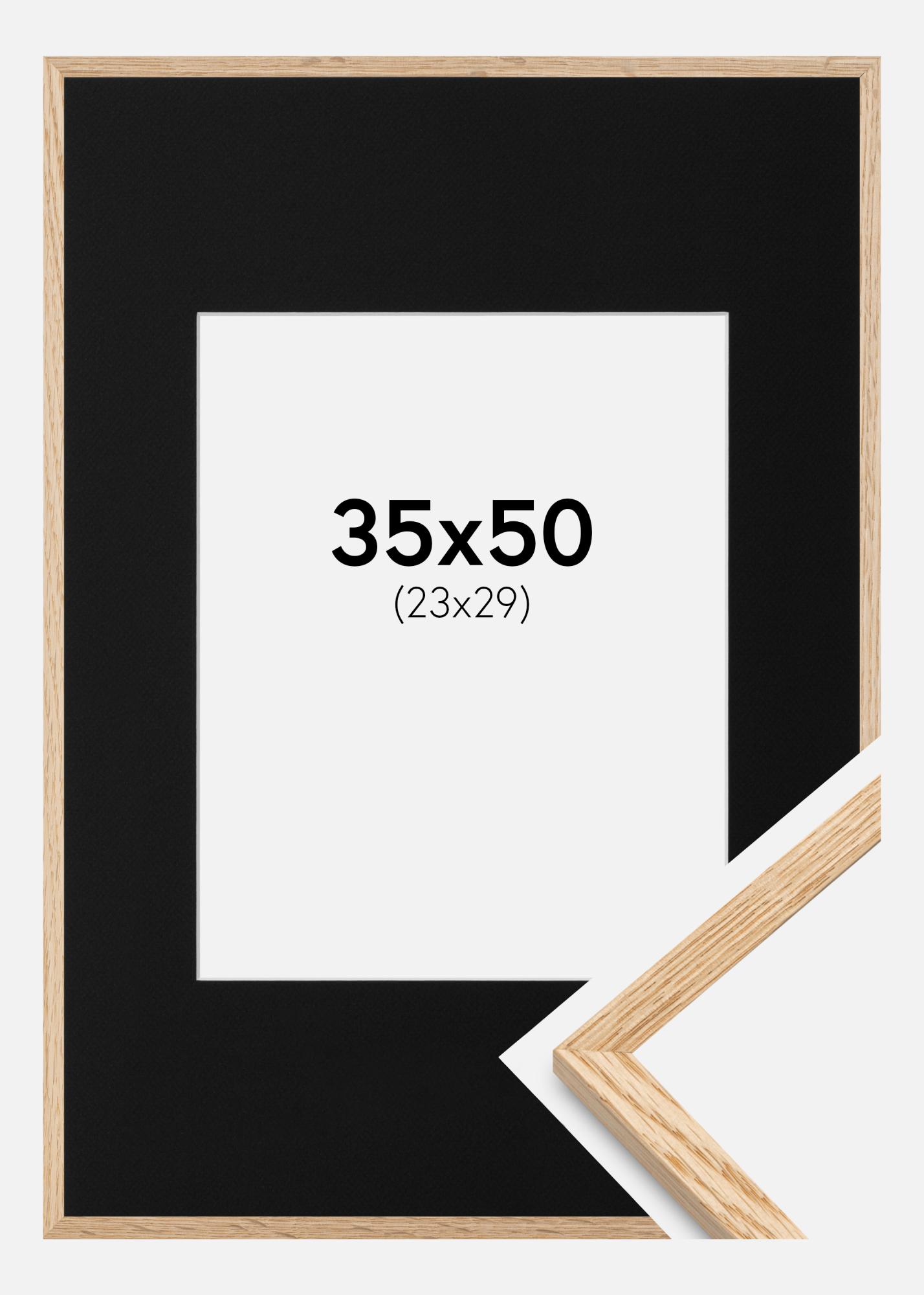 Cadre Mince Chêne 35x50 cm - Passe-partout Noir 24x30 cm
