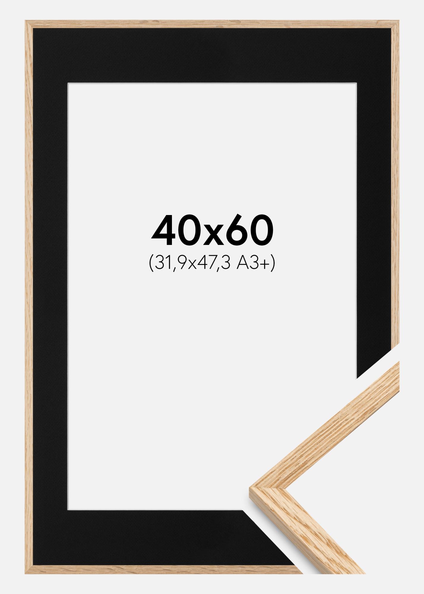 Cadre Mince Chêne 40x60 cm - Passe-partout Noir 32,9x48,3 cm (A3+)
