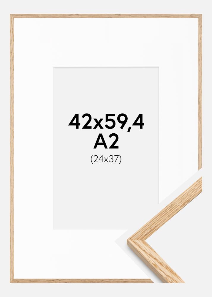 Cadre Mince Chêne 42x59,4 cm (A2) - Passe-partout Blanc 25x38 cm