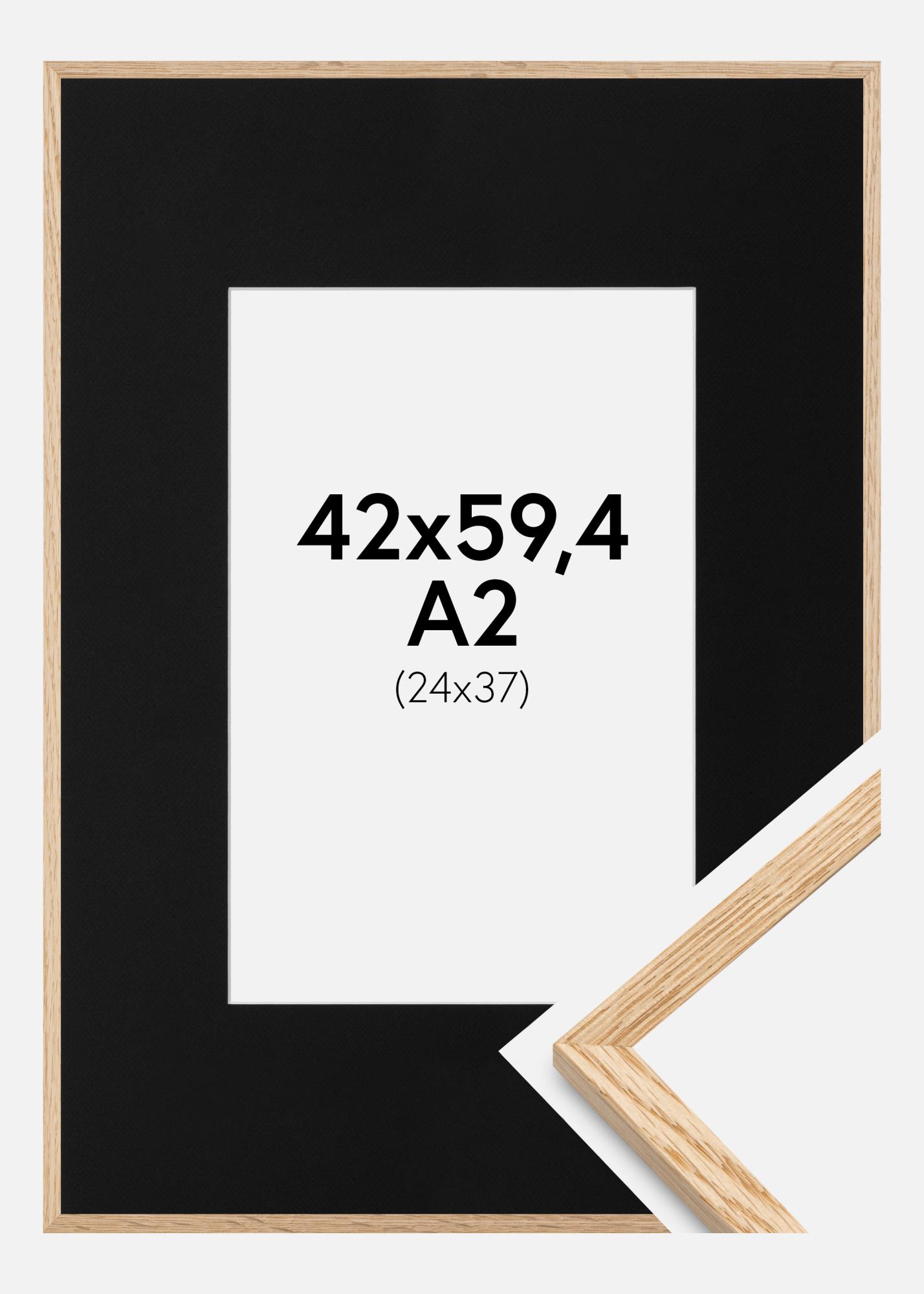 Cadre Mince Chêne 42x59,4 cm (A2) - Passe-partout Noir 25x38 cm
