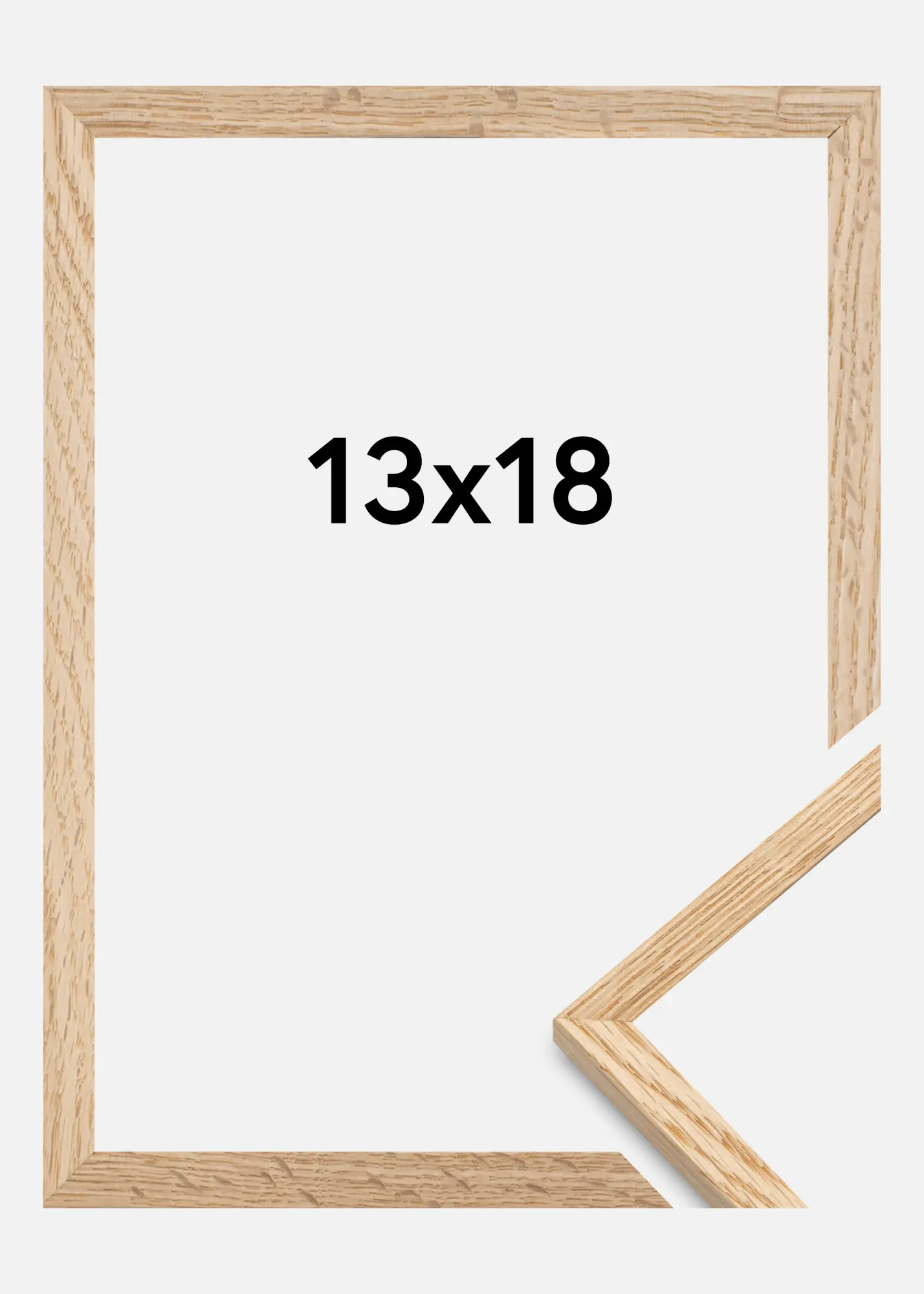 Le cadre est fabriqué en chêne et est de couleur naturelle avec une surface non traitée. Il est doté de verre acrylique, dont les avantages sont qu'il est à la fois léger et incassable – tout en étant aussi transparent que du véritable verre !