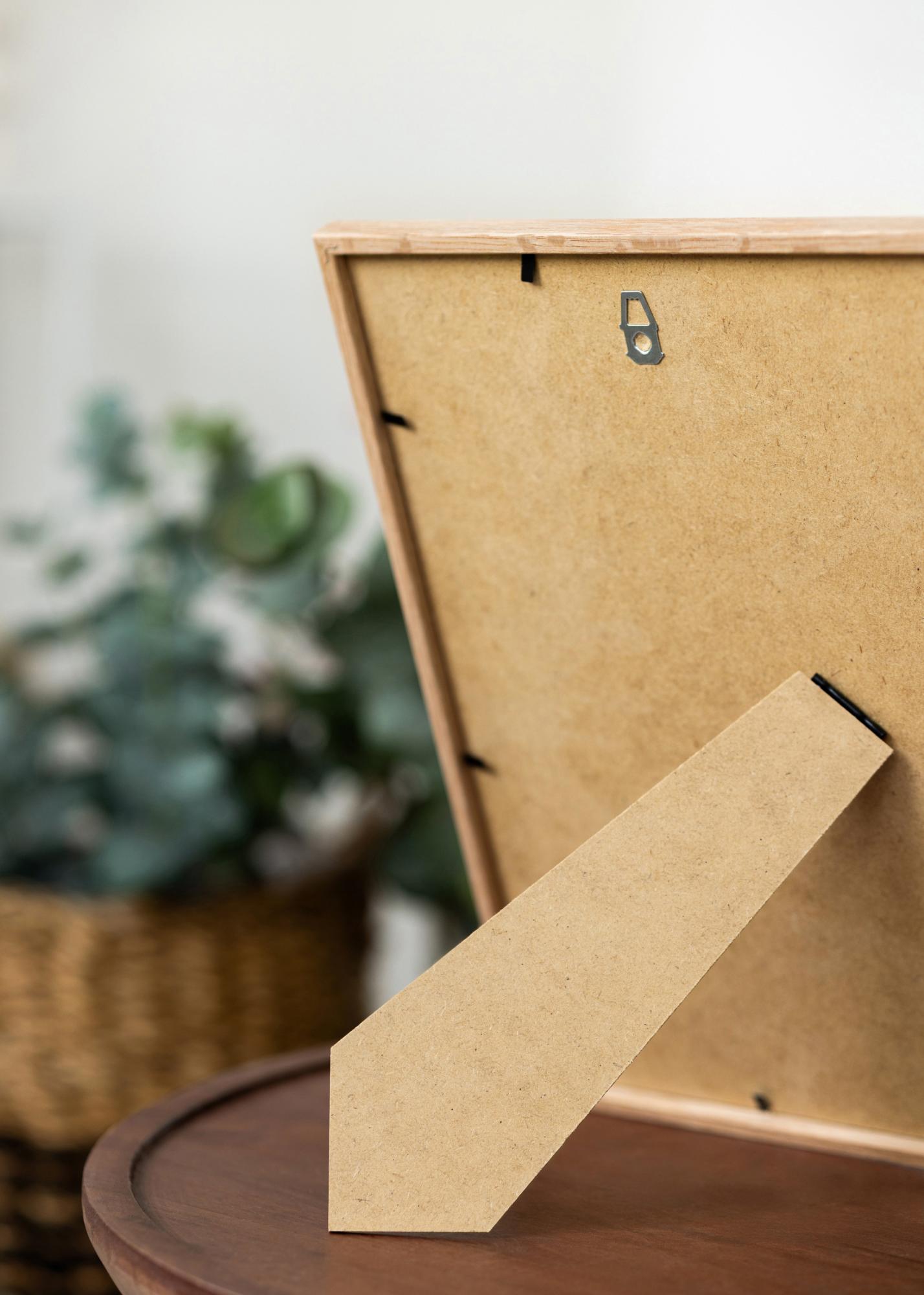 Le cadre est fabriqué en chêne et est de couleur naturelle avec une surface non traitée. Il est doté de verre acrylique, dont les avantages sont qu'il est à la fois léger et incassable – tout en étant aussi transparent que du véritable verre !