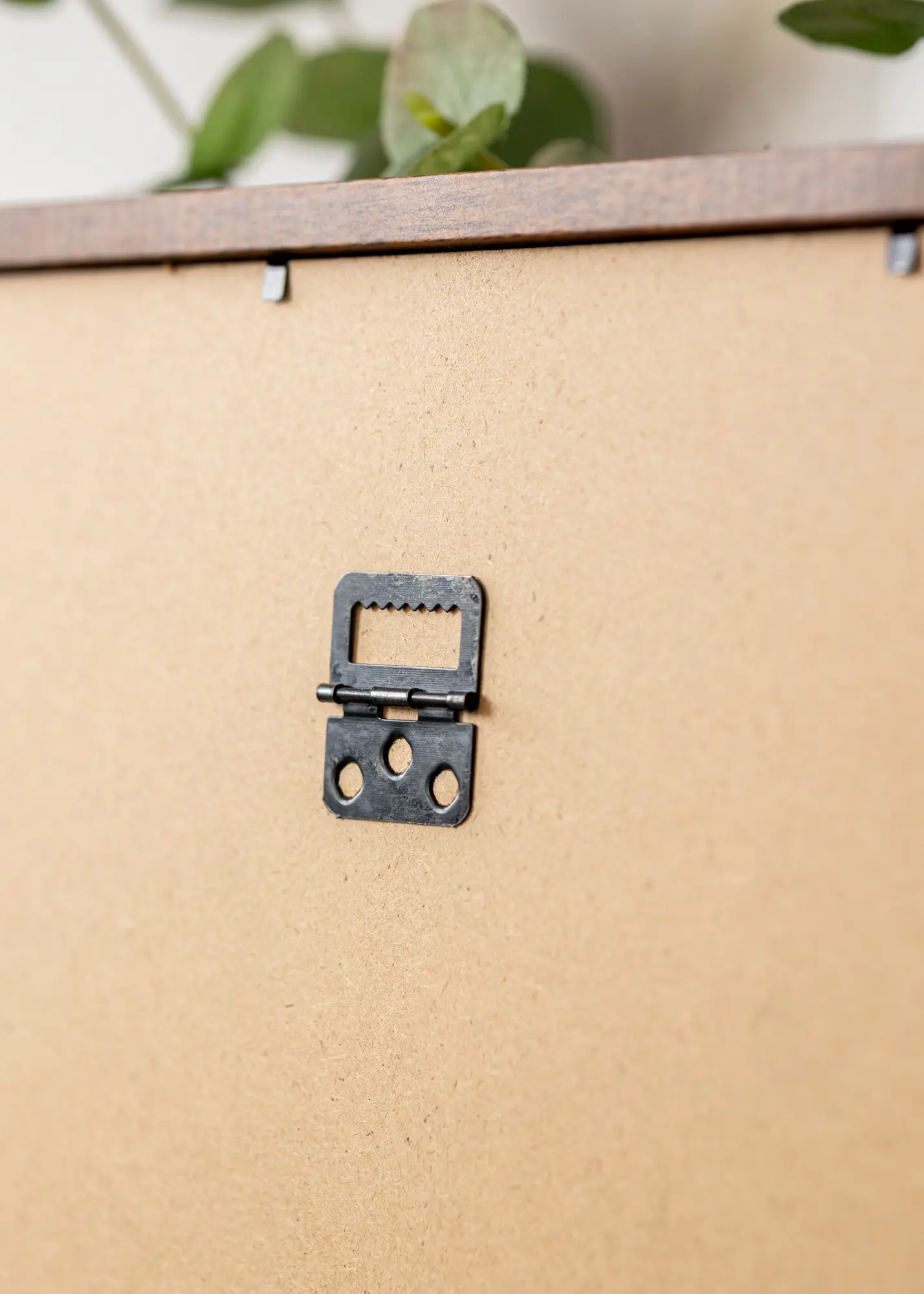 Ce cadre photo dispose d'une baguette de 14 mm de large et d'une profondeur de 15 mm, offrant un encadrement subtil mais distinctif de vos images. Le cadre est équipé de crochets métalliques à l'arrière, ce qui permet de l'accrocher facilement à la fois horizontalement et verticalement, selon ce qui convient le mieux à votre sujet.