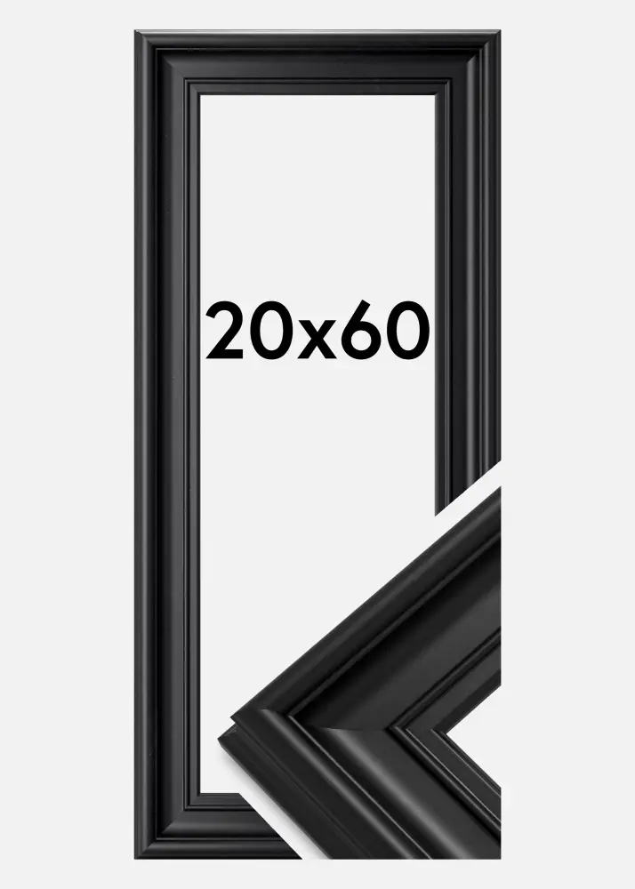 Mora Premium Schwarz ist einer unserer feinsten rahmen. Hergestellt aus Holz aus unseren schönen schwedischen Wäldern und montiert in unserer eigenen Rahmenwerkstatt. Das ermöglicht es uns, eine Qualität über das Gewöhnliche hinaus zu versprechen. Der Rahmen hat ein stilvolles breites schwarzes Profil von ganzen 57 mm. Perfekt für Ihre schönsten Bilder!