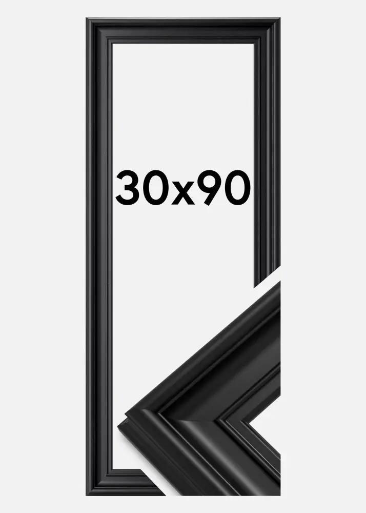 Mora Premium Schwarz ist einer unserer feinsten rahmen. Hergestellt aus Holz aus unseren schönen schwedischen Wäldern und montiert in unserer eigenen Rahmenwerkstatt. Das ermöglicht es uns, eine Qualität über das Übliche hinaus zu versprechen. Der Rahmen hat ein stilvolles breites schwarzes Profil von ganzen 57 mm. Perfekt für Ihre schönsten Bilder!