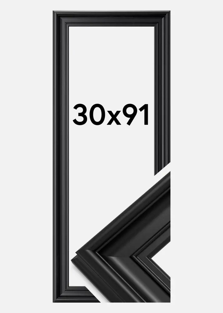 Mora Premium Schwarz ist einer unserer feinsten rahmen. Hergestellt aus Holz aus unseren schönen schwedischen Wäldern und montiert in unserer eigenen Rahmenwerkstatt. Das ermöglicht es uns, eine Qualität über das Übliche hinaus zu versprechen. Der Rahmen hat ein stilvolles breites schwarzes Profil von ganzen 57 mm. Perfekt für Ihre schönsten bilder!