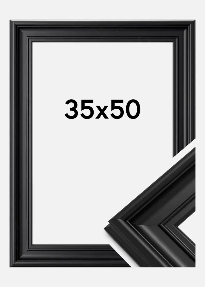 Mora Premium Schwarz ist einer unserer feinsten rahmen. Hergestellt aus Holz aus unseren schönen schwedischen Wäldern und montiert in unserer eigenen Rahmenwerkstatt. Das ermöglicht es uns, eine Qualität über das Übliche hinaus zu versprechen. Der Rahmen hat ein stilvolles breites schwarzes Profil von ganzen 57 mm. Perfekt für Ihre schönsten Bilder!