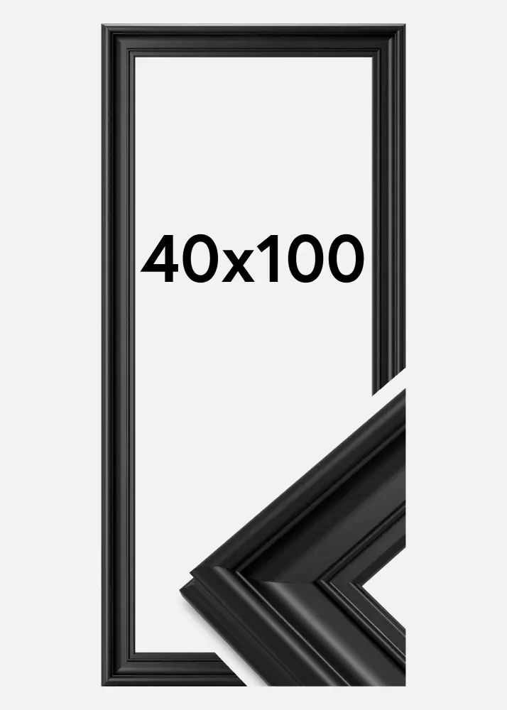 Mora Premium Schwarz ist einer unserer feinsten rahmen. Hergestellt aus Holz aus unseren schönen schwedischen Wäldern und montiert in unserer eigenen Rahmenwerkstatt. Das ermöglicht es uns, eine Qualität zu versprechen, die über das Übliche hinausgeht. Der Rahmen hat ein stilvolles breites schwarzes Profil von ganzen 57 mm. Perfekt für Ihre schönsten bilder!
