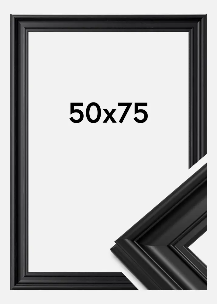 Mora Premium Schwarz ist einer unserer feinsten rahmen. Hergestellt aus Holz aus unseren schönen schwedischen Wäldern und montiert in unserer eigenen Rahmenwerkstatt. Das ermöglicht es uns, eine Qualität über das Gewöhnliche hinaus zu versprechen. Der Rahmen hat ein stilvolles breites schwarzes Profil von ganzen 57 mm. Perfekt für Ihre schönsten bilder!