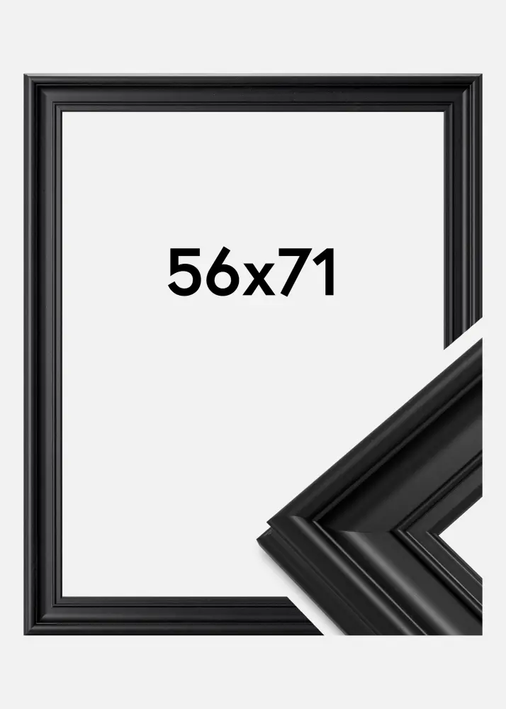 Mora Premium Schwarz ist einer unserer feinsten rahmen. Hergestellt aus Holz aus unseren schönen schwedischen Wäldern und montiert in unserer eigenen Rahmenwerkstatt. Das ermöglicht es uns, eine Qualität über das Übliche hinaus zu versprechen. Der Rahmen hat ein stilvolles breites schwarzes Profil von ganzen 57 mm. Perfekt für deine schönsten Bilder!