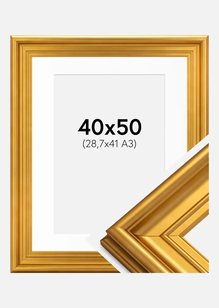 Cadre Mora Premium Or 40x50 cm - Passe-partout Blanc 29,7x42 cm (A3)