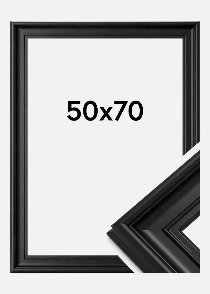 Mora Premium Schwarz ist einer unserer feinsten rahmen. Hergestellt aus Holz aus unseren schönen schwedischen Wäldern und montiert in unserer eigenen Rahmenwerkstatt. Das ermöglicht es uns, eine Qualität über das Übliche hinaus zu versprechen. Der Rahmen hat ein stilvolles breites schwarzes Profil von ganzen 57 mm. Perfekt für deine schönsten Bilder!