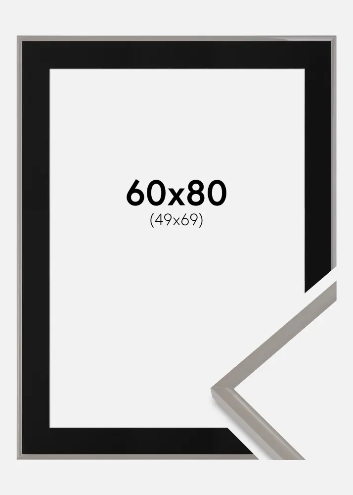 Forfait comprenant un cadre photo et un passe-partout noir inclus. Sur l'image du produit vous pouvez voir les dimensions du cadre (indiquées en gras) et les dimensions intérieures du passe-partout (indiquées entre parenthèses). Veuillez noter que les dimensions intérieures du passe-partout doivent toujours être inférieures de 1 cm à la taille de l'image souhaitée.