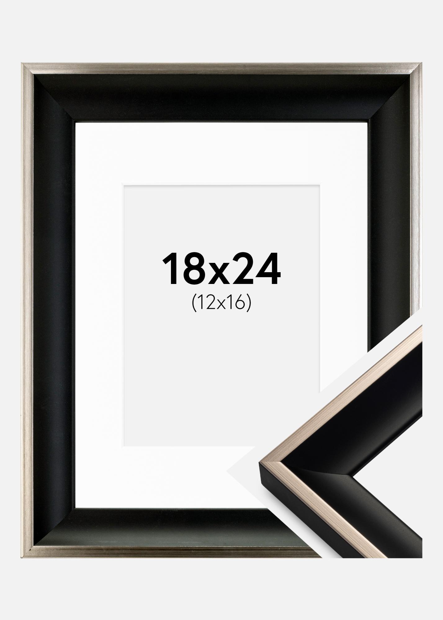 Cadre Öjaren Noir-Argent 18x24 cm - Passe-partout Blanc 13x17 cm