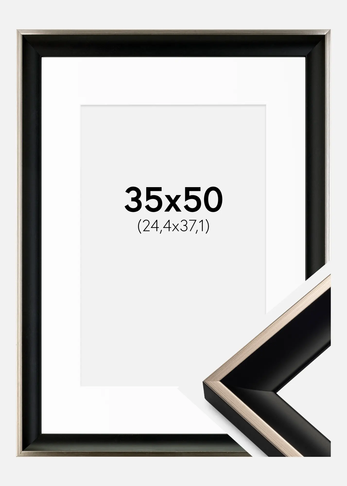 Cadre Öjaren Noir-Argent 35x50 cm - Passe-partout Blanc 10x15 inches
