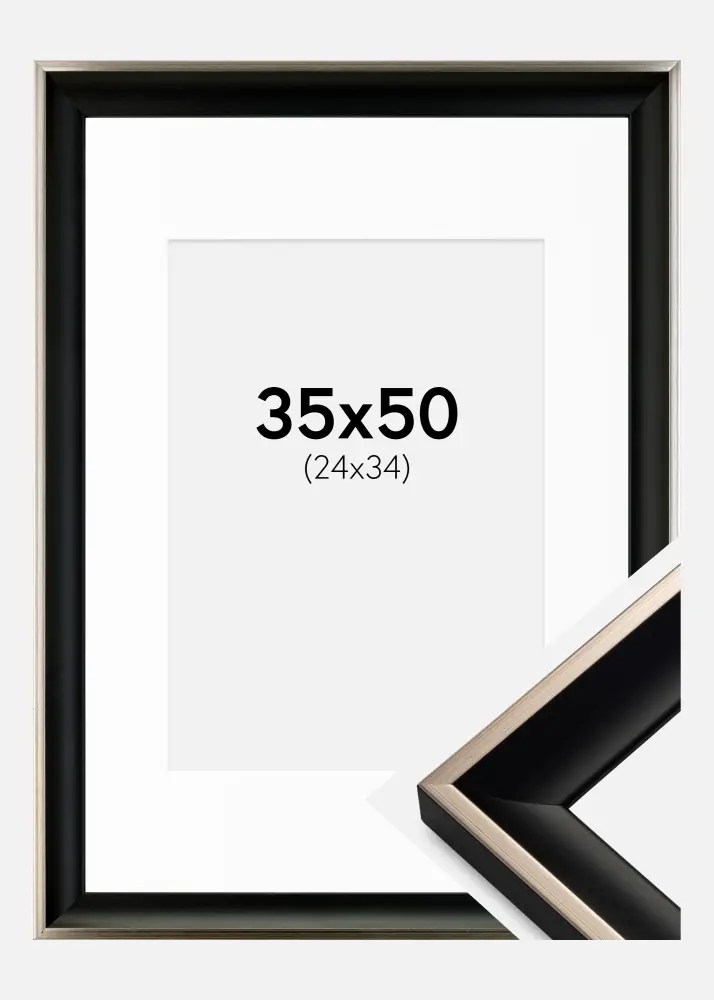 Cadre Öjaren Noir-Argent 35x50 cm - Passe-partout Blanc 25x35 cm
